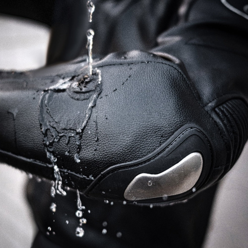 A high-performance proofing spray designed to provide long-lasting water, oil and dirt repellency for textile and leather motorcycle apparel (and other gear). It protects against soaking, preserves breathability of climate membranes, guards against UV fading, and prevents the uncomfortable “wet feeling” caused by evaporation-cooling when fabric becomes saturated.