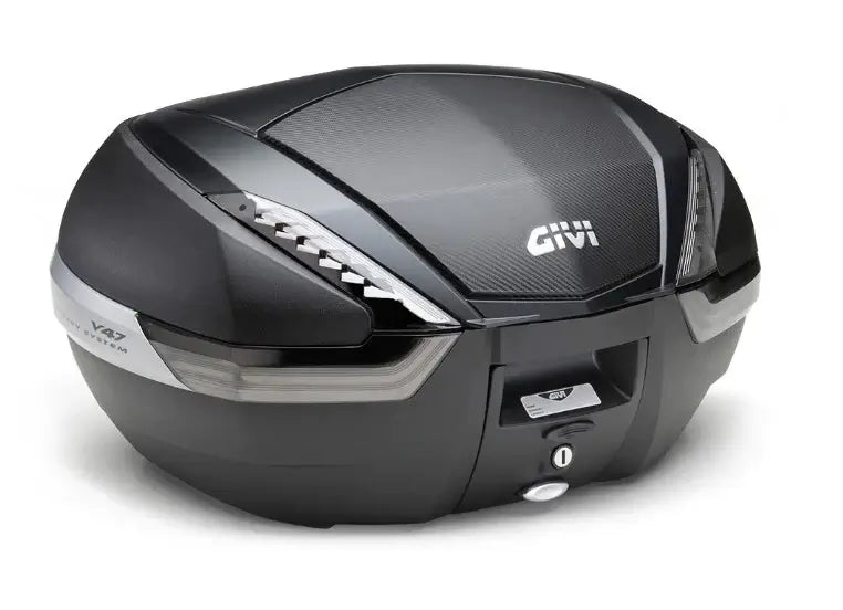The Givi V47 Monokey Top Case features 47 liters of storage capacity, in a stylish, modern package. Durable plastic construction with an aluminum top insert completes the look while the Monokey opening/closing system is easily operable with only one hand.