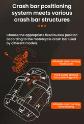 Whether you're commuting daily, touring long distances, or tackling off-road terrain, this bag adapts to your needs—serving as a frame bag, tail bag, crash bar bag, dirt bike bag, or sissy bar bag.