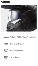 Perfect trail helmet for long distance routes and any surface. Maximum safety and lightness thanks to its carbon fibre. Excellent ventilation. Adjustable and removable peak. Wide anti-scratch visor prepared for the anti-fog system, Pinlock Max Vision, and interior sun visor.