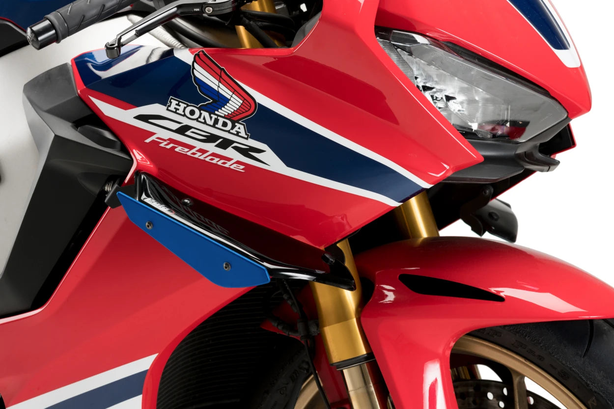 Puig Downforce Sport spoilers have been designed and manufactured in Barcelona, following the latest developments in MotoGP and WorldSBK in the field of aerodynamics. Thanks to the advances and avant-garde technologies of the firm, you will be able to equip your street motorbike with the best innovations and features of the high competition, in addition to providing an aggressive aesthetic and personalizing your motorcycle to taste thanks to its wide range of available colors.