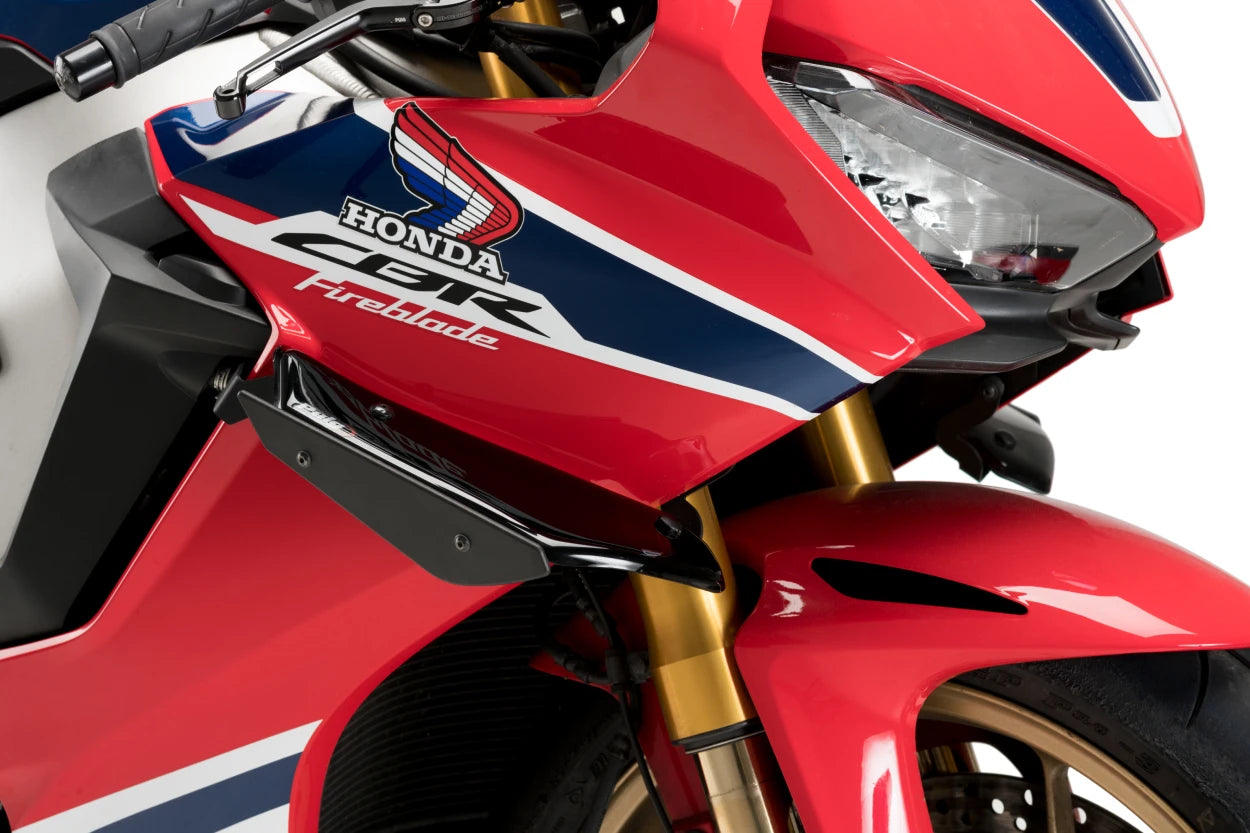Now you can benefit from the racing aerodynamic technology in your motorcycle. Puig Downforce Sport spoilers have been developed thanks to the experience and tests carried out by the Kawasaki Racing team on the WorldSBK championship circuits. Get the ultimate racing touch and improve the cornering of your motorcycle with these Sport spoilers.