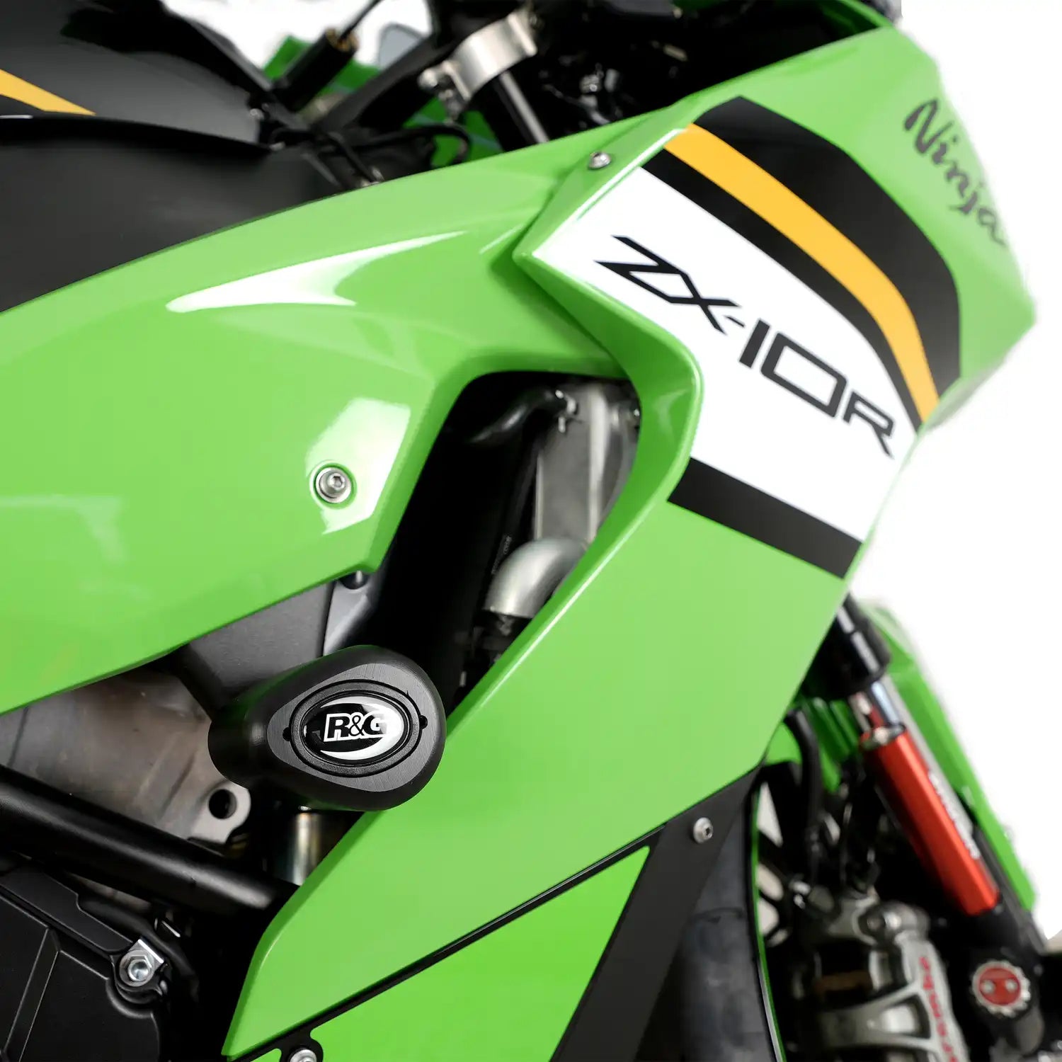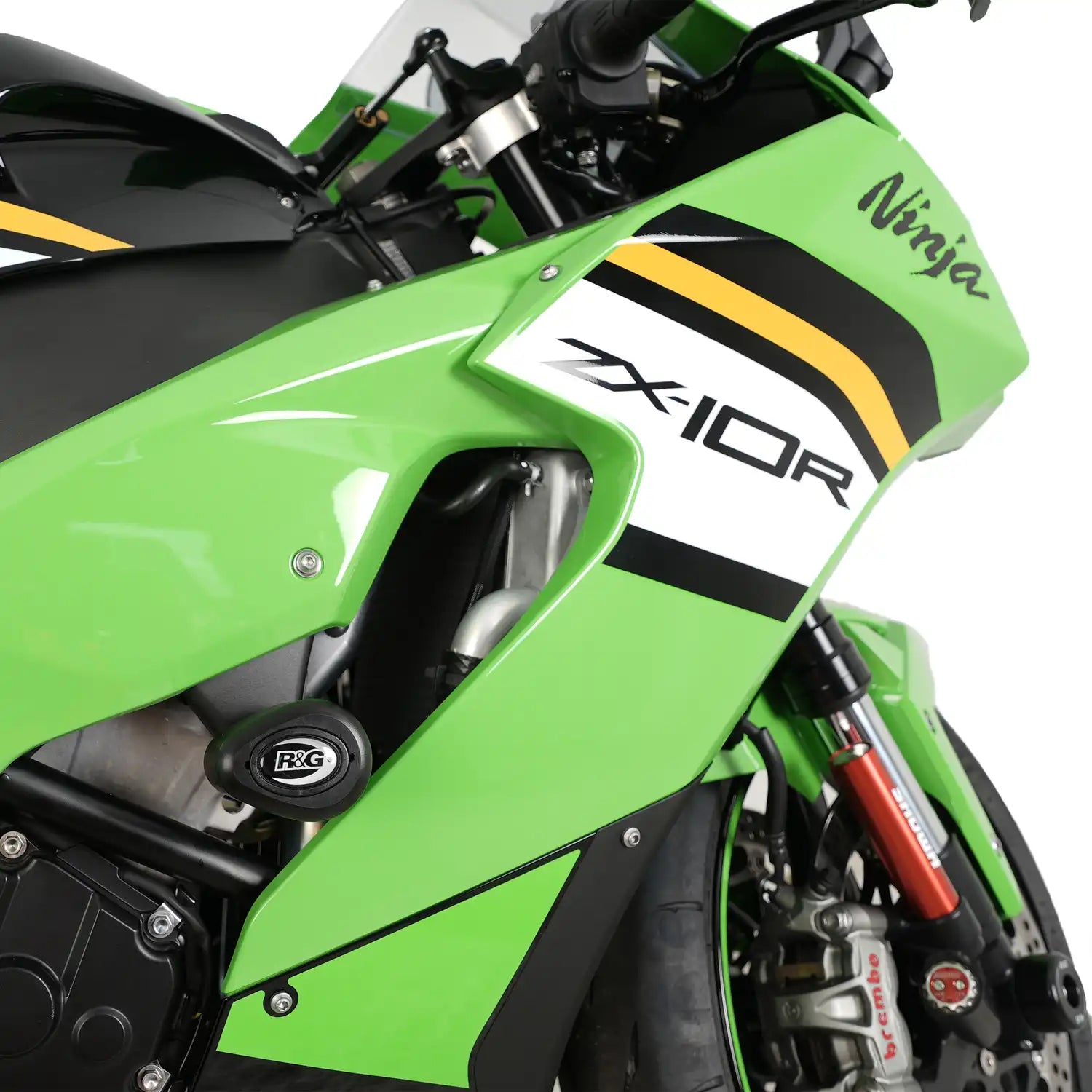 With bespoke designs for over 350+ models of motorcycle, there is bound to be an application for your bike. These are not "mushrooms"! Unlike most of our competitors, we use de-embattled high-tensile steel bolts which are designed to bend on impact rather than to shear or snap. In addition, we add compression sleeves inside the bobbins which are designed to allow the retaining bolts to be torqued to the correct specification and not to work loose through vibration. These crash protectors feature our stylish, aerodynamic Aero Bobbins and are available in black. Suitable for the Kawasaki ZX10-R 2011 model.