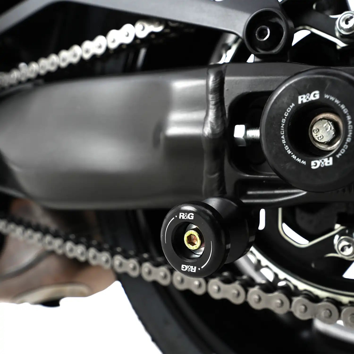 These cotton reels mount directly into the mounting points on the rear swingarm offering the best of both worlds in terms of crash protection and functionality with the ability to use R&G cotton reels, which offer excellent crash protection to those components located towards the rear as well as the ability to lift up the rear of the bike with a paddock stand for maintenance and tyre changes. Available in Black, Orange or White . Sold in Pairs.