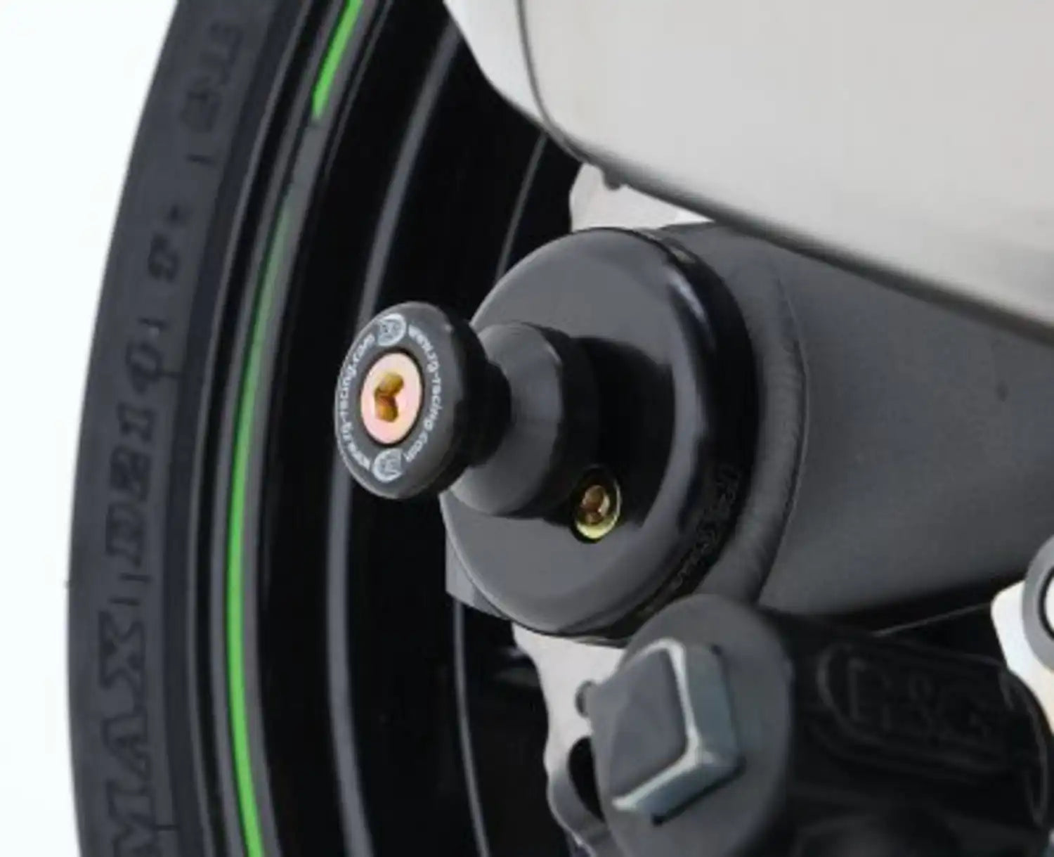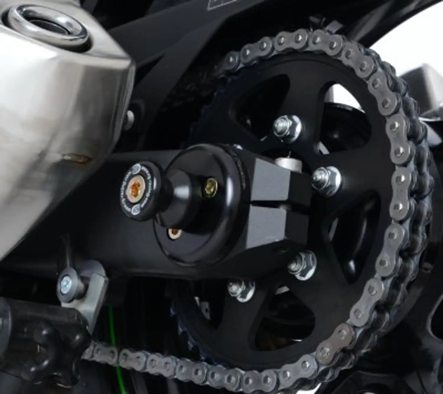 These R&G Spindle Sliders installed into the rear swingarm of the Z1000, compatible with all Kawasaki Z1000 '10-'24 models and Z1000SX '17- '24 models. They offer essential rearward crash protection in the event of a crash or drop, helping to protect those core and expensive components from damage whilst also allowing the motorcycle to be lifted onto a paddock stand (Not compatible with R&G Elevation rear stand) for routine riding maintenance, chain adjusting and cleaning.