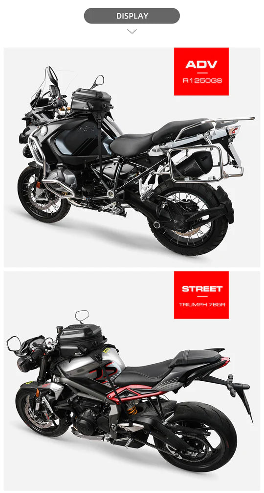 Expandable Internal Capacity: This fuel tank bag has sufficient storage space, which can be expanded from 15L to 18L to perfectly accommodate the motorcycle riding accessories you need (gloves, glasses, phone, rechargeable battery, etc.)