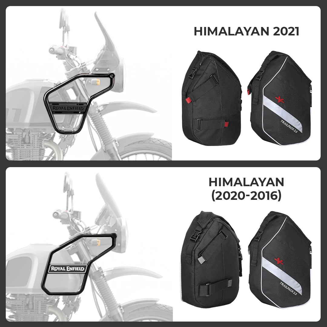 Distribution of weight is a key factor to be considered while loading any luggage onto a motorcycle, and the Trailpack for the Royal Enfield Himalayan is truly unique because it enables you to keep the weight of your gear towards the front of the motorcycle. Sold as a pair, these bags have a unique, stylish and purpose-built design that is popular among riders. With a 14L capacity, they are an ideal replacement for traditional tankbags, perfect for carrying essential trail items like a pump, toolkit, spare parts, and energy bars while maintaining balance on the bike. The bags are also 100% waterproof, thanks to their seam-sealed inner ripstop liners that can withstand 5000mm of water pressure, making them suitable for use even in heavy monsoon rains. Available in 2 models - Choose the trailpack version specific to your bike variant.