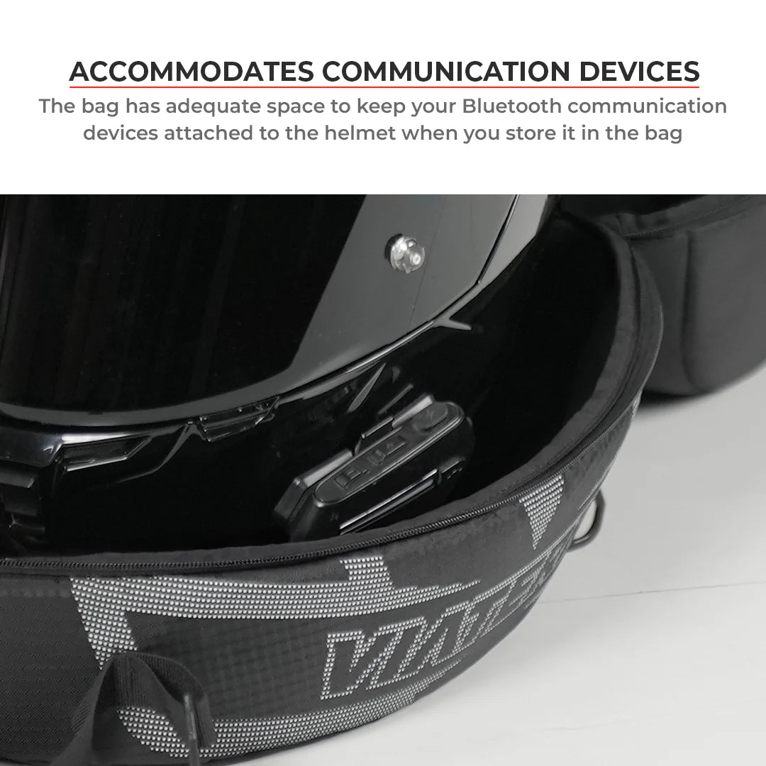 The ViaTerra Motorcycle Helmet bag is the perfect solution for protecting your expensive helmet from daily handling accidents. Designed to safeguard your helmet from small bumps, scratches, and dust, this bag helps to lengthen the lifespan of your helmet. Compatible with all full-face helmets and easily accommodating a modular or adventure helmet, the ViaTerra helmet bag features both backpack straps and a carry handle for easy transport, as well as airport-friendly aesthetics. The bottom zipper allows for easy access to the helmet, and the cavity can also be used as a storage pocket for your gloves, balaclava, wallet, and other small essentials. With ample space to keep your Bluetooth communication devices attached to your helmet, the ViaTerra Helmet bag is the ultimate accessory for any helmet owner!