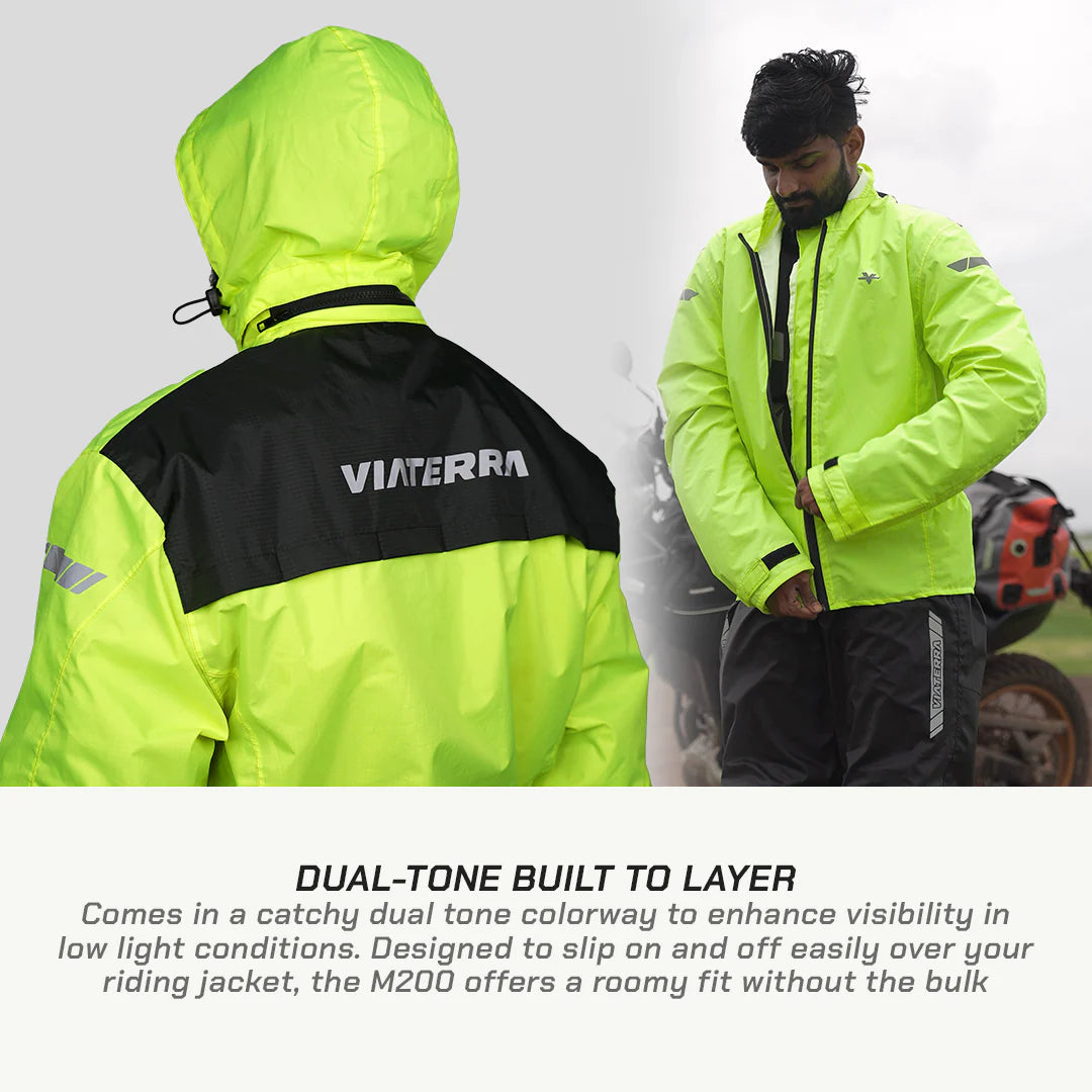 Purpose-built for motorcycle touring in the Indian monsoon, the M200 Rain Jacket features a breathable ripstop shell and YKK Aquaguard zipper for reliable waterproofing. With a pre-curved ergonomic fit and built-in ventilation, it’s designed to layer over your riding gear, pack down small, and keep you dry - ride after ride.